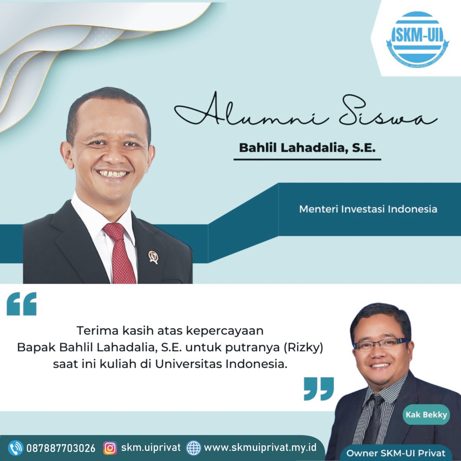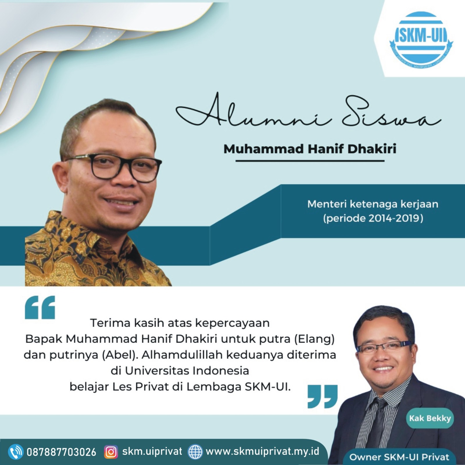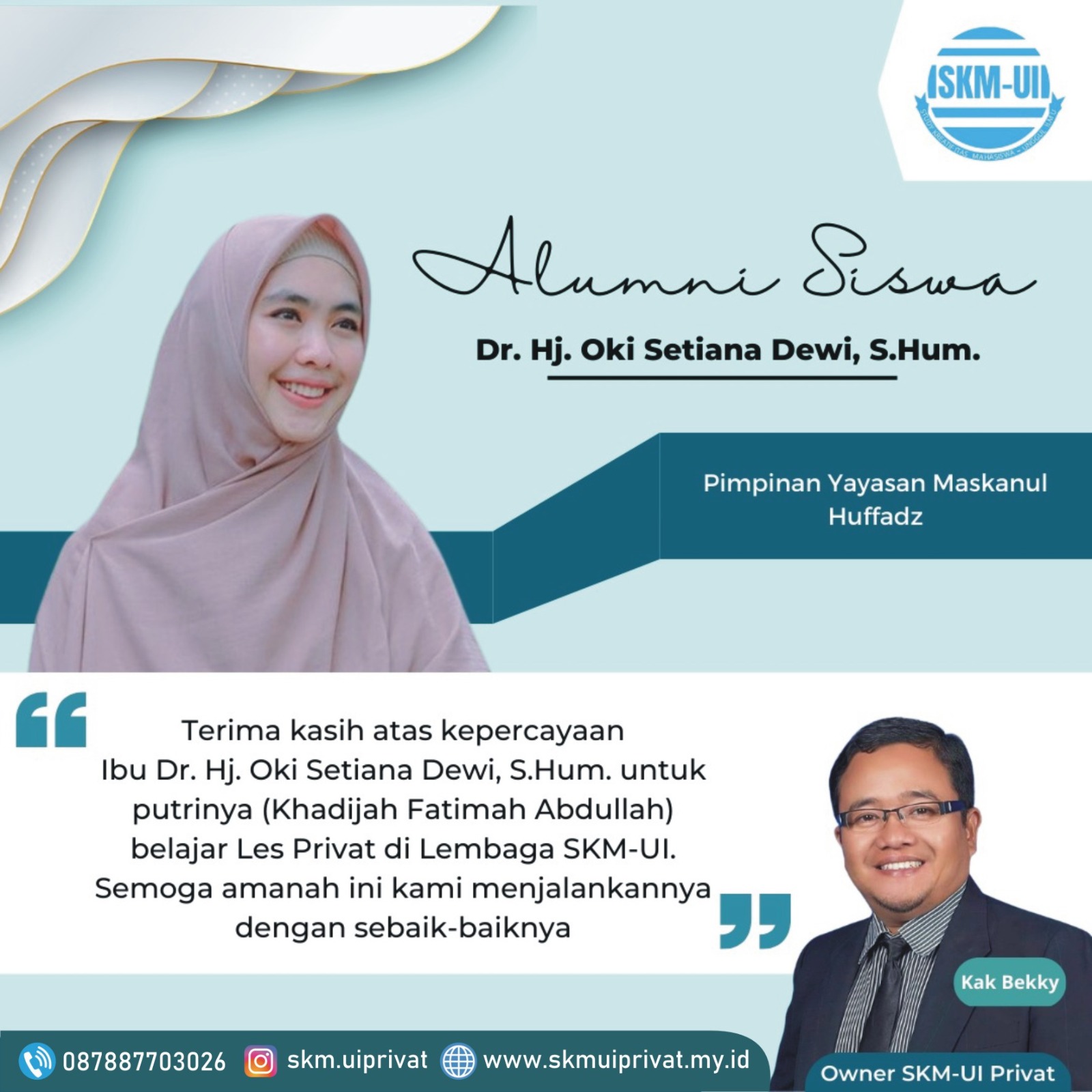 "Terima kasih SKM-UI yang sudah memberikan Guru Les terbaik, sehingga saya bisa kuliah di Fakultas Kedokteran UI"